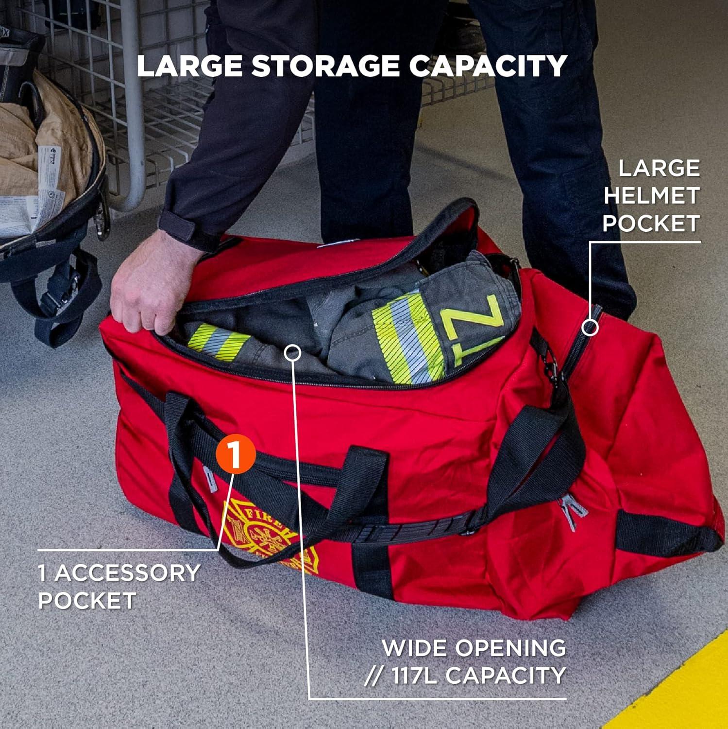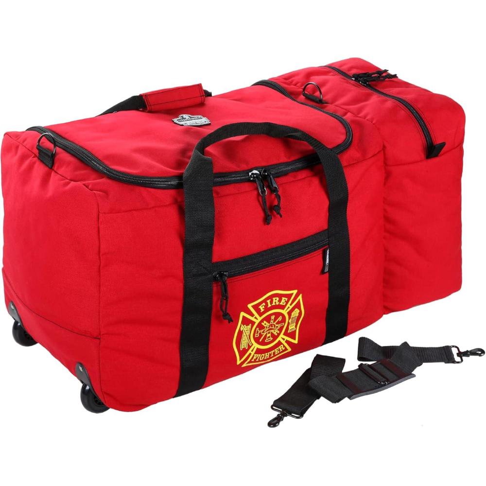 Ergodyne Arsenal 5005W Large Nylon Rolling Firefighter Rescue Turnout Fire Gear Bag with Shoulder Strap and Helmet Pocket(Wheeled Firefighter Turnout Bag – 117l)