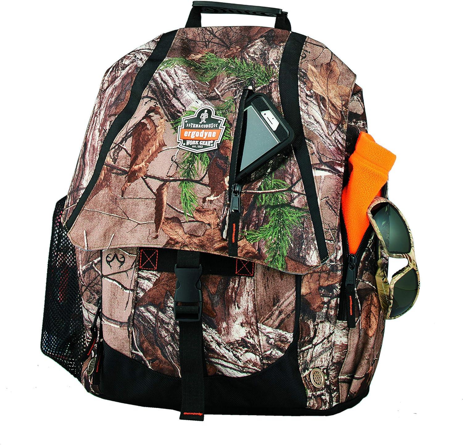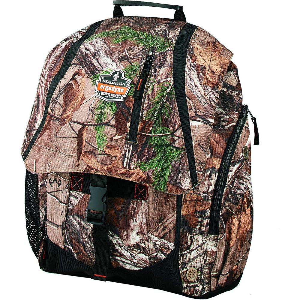 The Ergodyne Arsenal 5143 General Duty Gear Backpack to makes your life easier by keeping the gear you need clean, dry and organized. This traveling backpack features a large main compartment with plenty of room for your everyday essentials, organizational pockets to house smaller items and a laptop/tablet sleeve to protect your devices. DURABLE MATERIALS This heavy-duty backpack is super durable made with 600 denier polyester material to withstand wear and tear for long-lasting performance. The bottom is reinforced with a 1680 denier polyester. The reinforced handle and adjustable padded shoulder straps make transporting this bag around easy. ULTIMATE ORGANIZATION The rucksack backpack style has a large open main compartment to fit all your gear and stays upright for easy loading and unloading, so no gear gets left behind. Need to pack 24 cans of beer and a pack of bacon? No problem. Or if you must, load it up with your clipboard, files, iPad and pens. Three small accessory pockets can hold cell phones, headphones, pens, keys, and other small parts to keep them easily accessible. The padded laptop sleeve in the main pocket ensures your device stays protected. The interior polyester material of the Realtree Xtra option is a light tan and gray color making it easy to see your stuff in the bag, so you can grab what you need and go. FROM WORKDAY TO WEEKEND Great for your next outdoor adventure, vacation or visit to the gym. This lightweight backpack is not only great for your hauling your gear for the job but can also be used as a weekend bag as well. It’s the perfect camo backpack for camping, hunting, fishing, canoeing, or any other outdoor activity keeping your gear concealed in the woods or in the duck blind.
