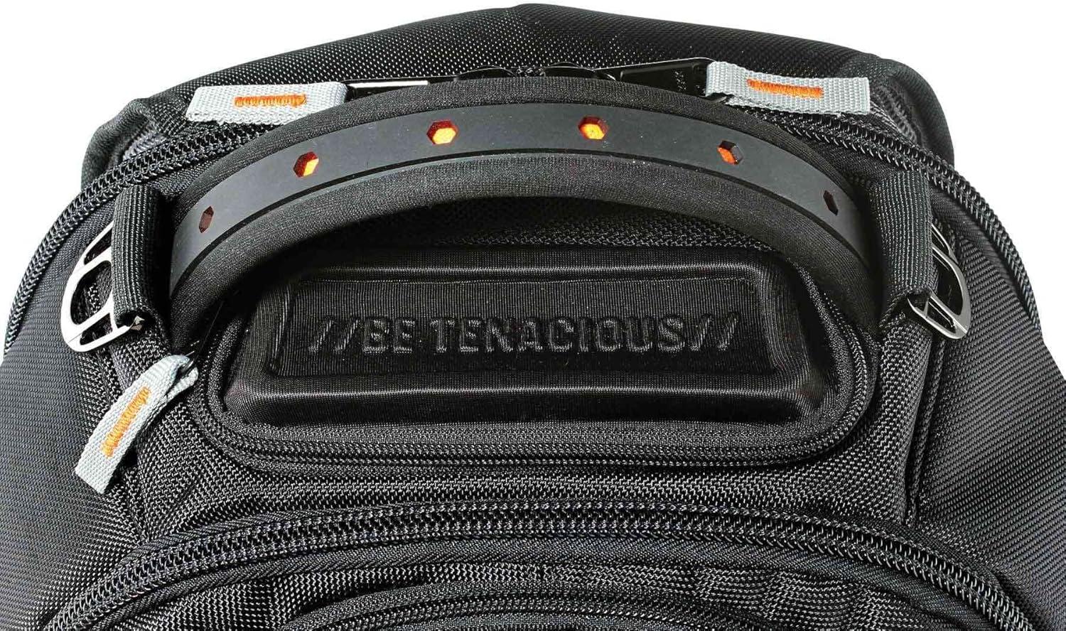 Two vertical side pockets for water bottles and travel mugs / Four main compartments including reinforced padded sleeve for laptops and tablets