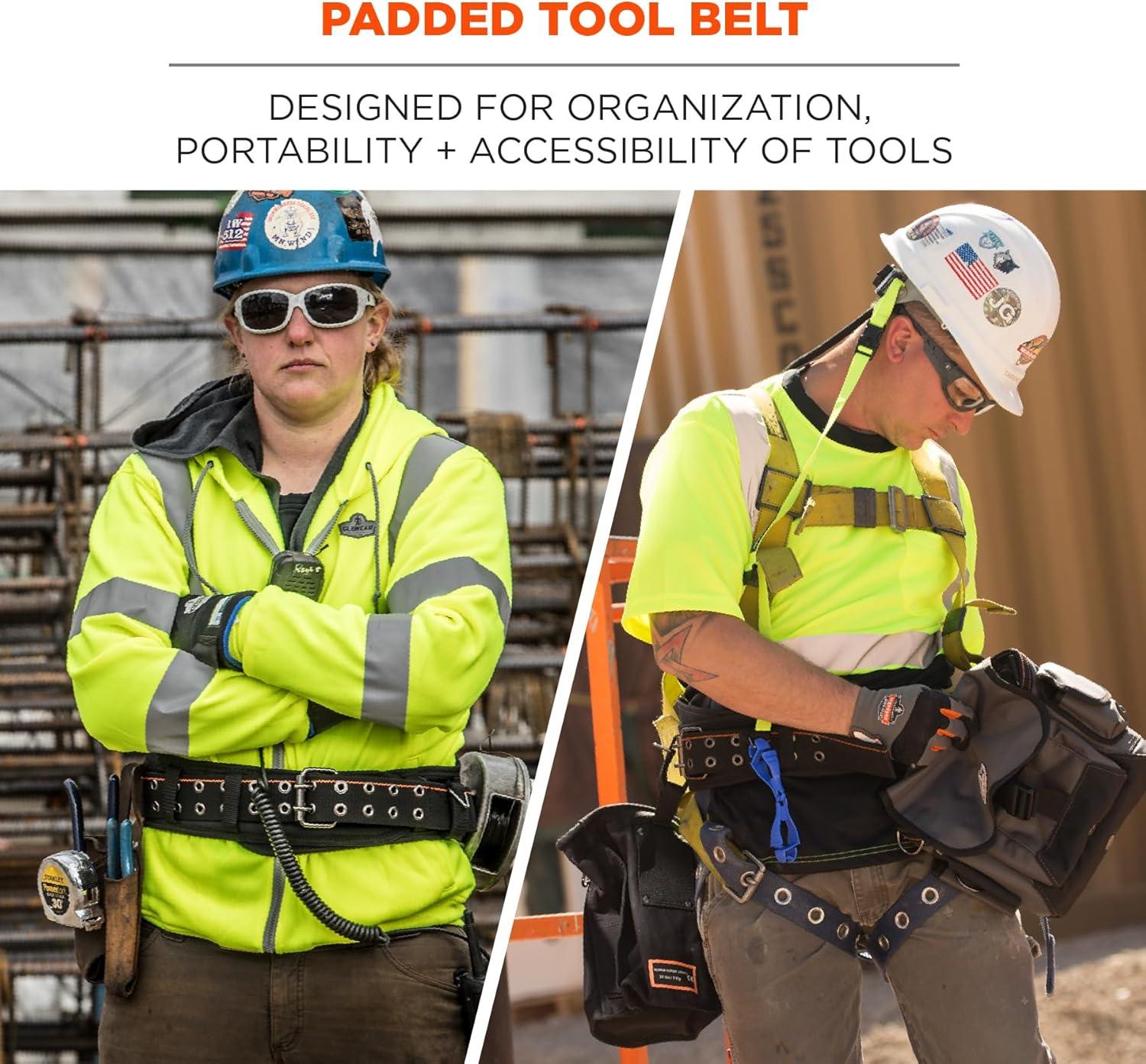 Welcome to a world where failure is not an option and top-notch quality is a key component for workday success. A place where heavy-duty woven fabric, nickel-plating, undaunted strength, and abrasion-resistance is a way of life. With 6-Ply stitching and a will to get the job done right, from their bio-curved padded shoulder strap right down to their industry-best molded rubber bases. This is it: tool-specific carry-on creativity that delivers on-the-job organization over the long haul. 3-inch and 5-Inch Tool Belts: Comfortable, padded tool belt for easy rig support. Thick, vented foam padding, cut ebytra wide for optimal comfort 2-Inch double tongue metal roller buckle for strength and durability Nickel-plated steel grommets set firmly for durability