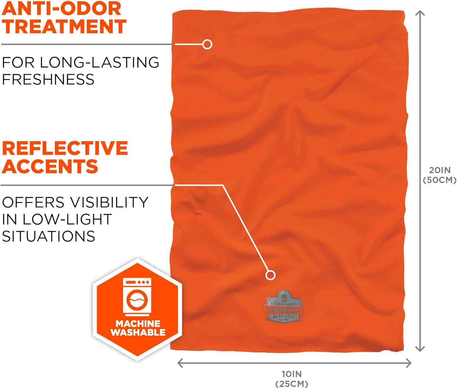 Ergodyne Chill-Its 6487 Cooling Neck Gaiter, Multiple Ways to Wear Headband or Face Mask(Hi-vis Orange Reflective)