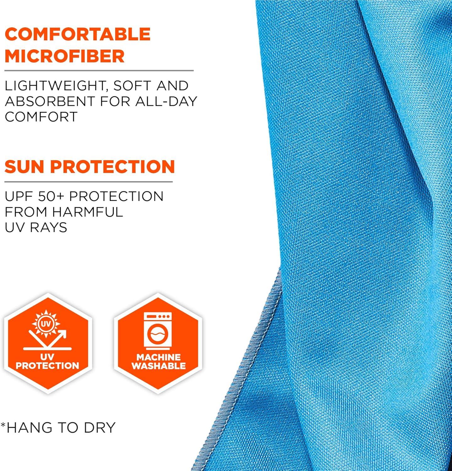Ergodyne Chill Its 6602MF Cooling Towel, Soft Microfiber Material, UPF 50+,Blue,41" x 9.84"(Blue)