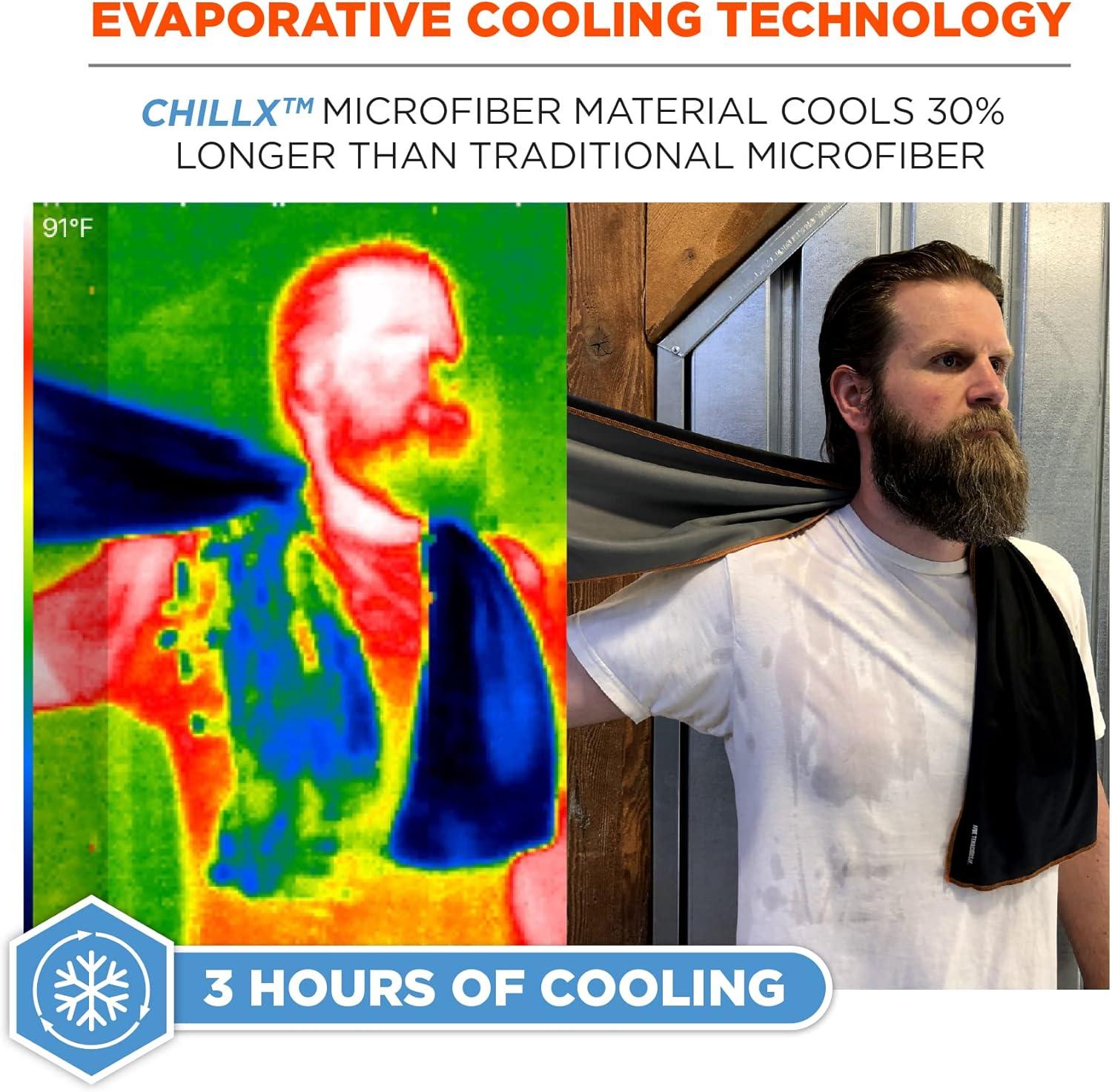 The Ergodyne Chill-Its 6602MF Microfiber Cooling towel is made with soft and absorbent material that is easy to activate and comfortable to wear all day long for both cooling relief and UV protection. Made with UPF 50 protection, the microfiber material Is chemical free and stays soft and flexible, wet or dry. Designed to create a feeling colder than ambient air temperature and absorb and hold more water than other cooling towels on the market for a longer-lasting cooling. This neck cooling wrap can be used for hours or for quick relief and is completely reusable, just re-wet to activate.
