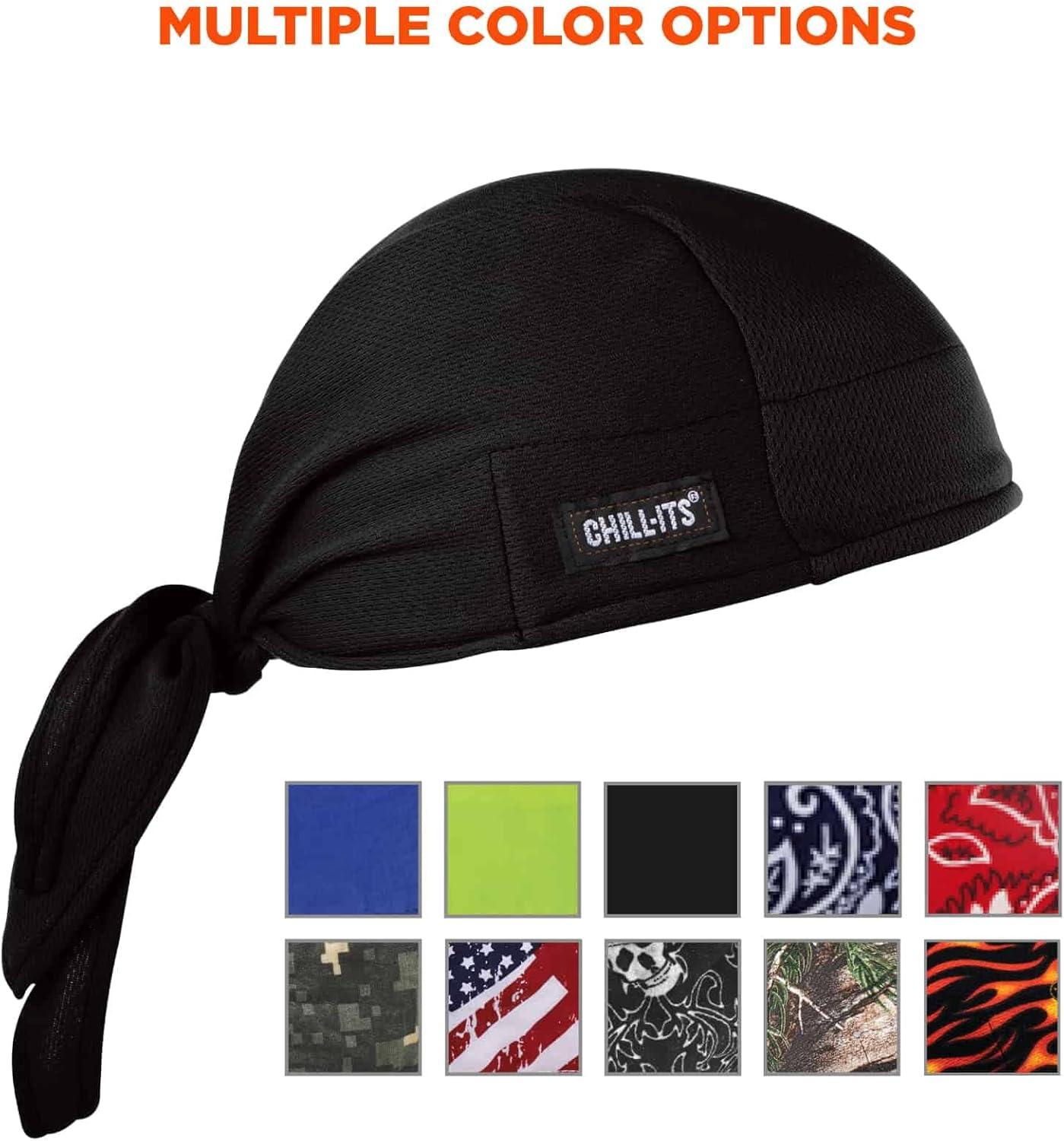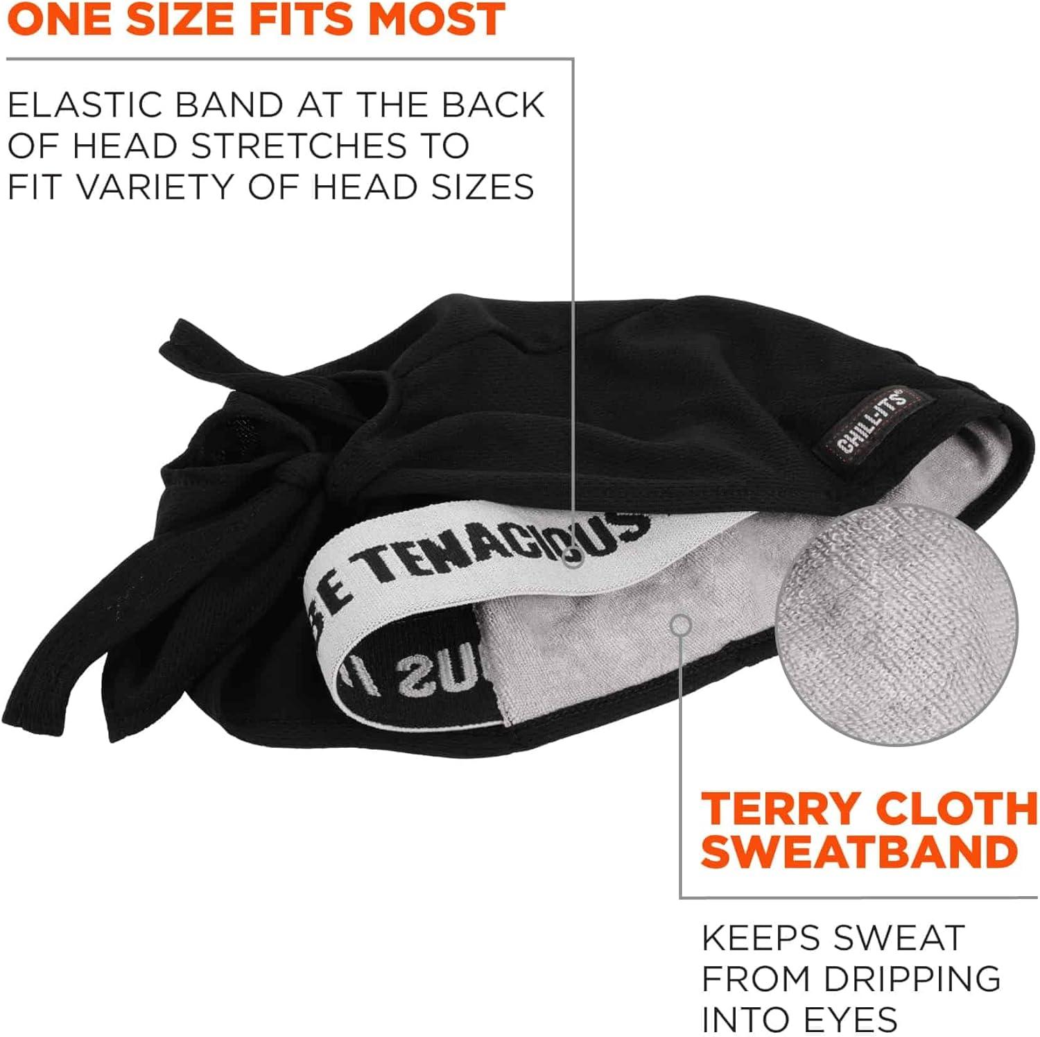 Ergodyne Chill Its 6615 High-Performance Bandana Do Rag – Terry Cloth Sweatband(Black)