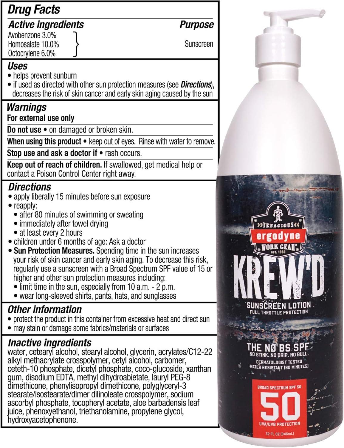 Ergodyne KREW’D 6351 Sunscreen Lotion, Broad Spectrum, SPF 50, 8 oz(1 Count (Pack of 12))