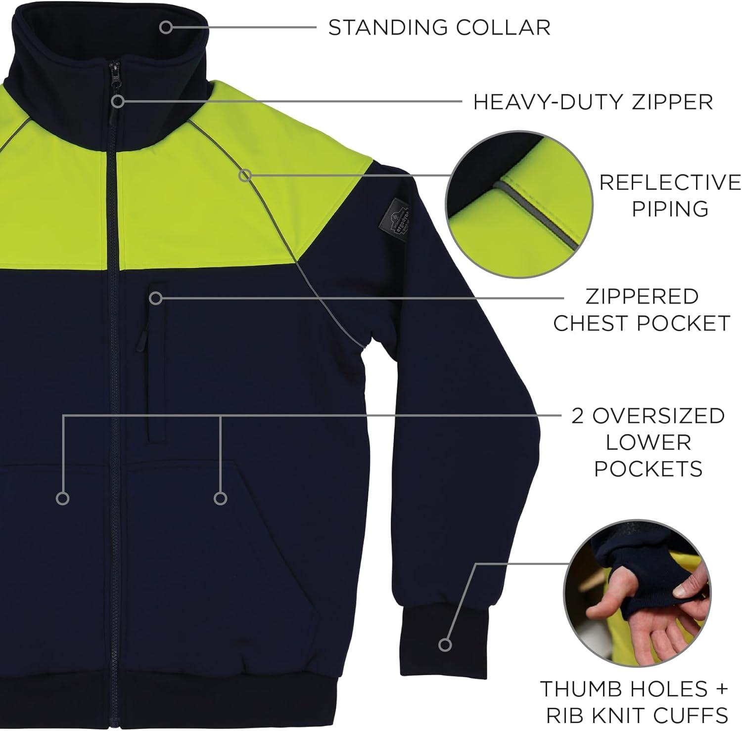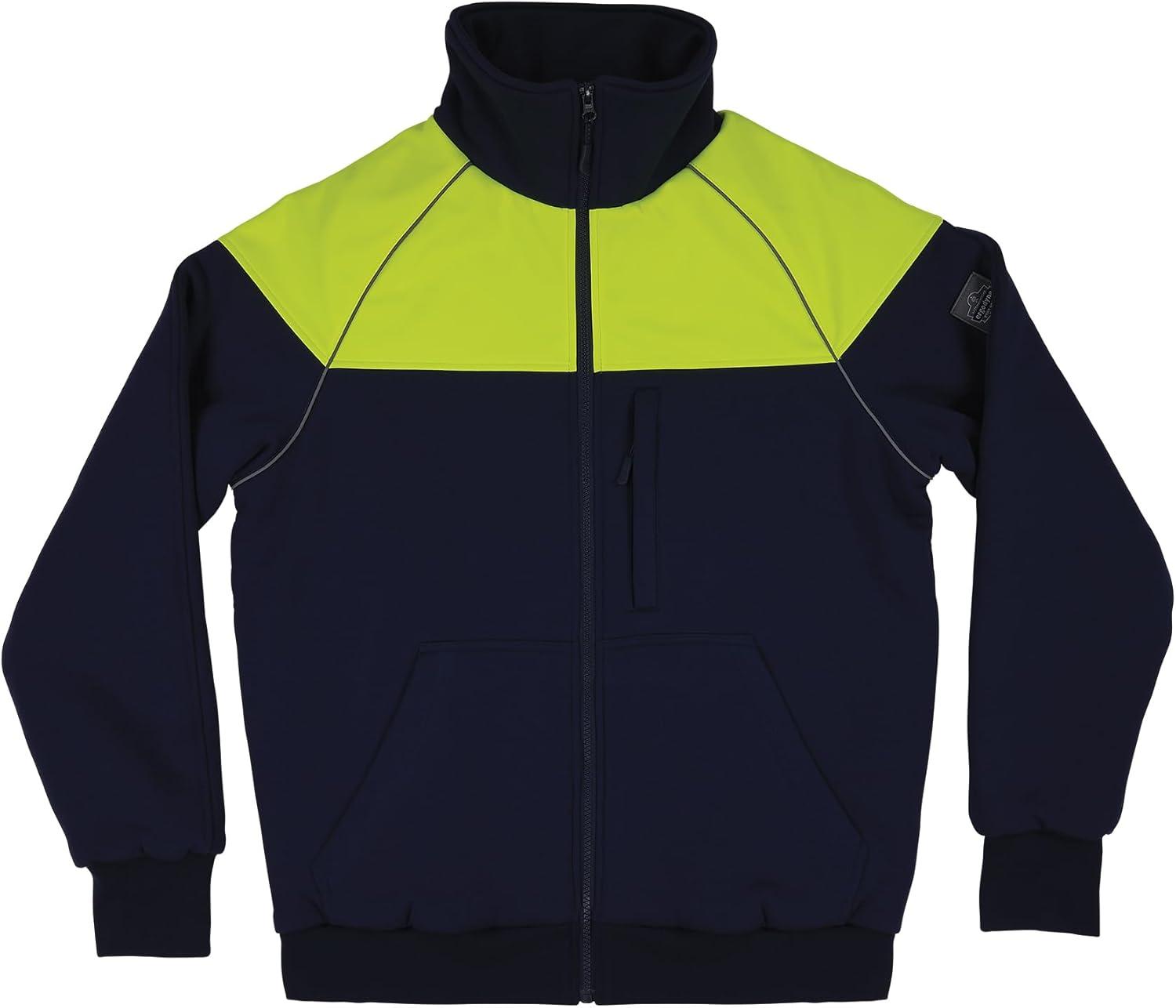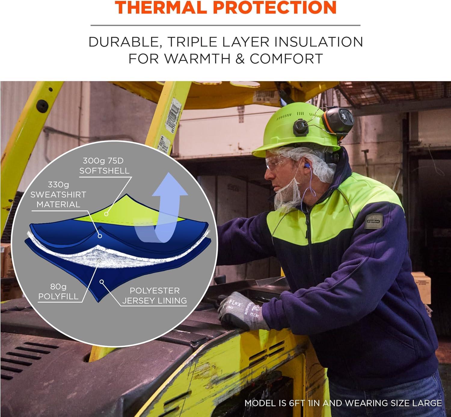 The 6474 Insulated Cooler Jacket is rated to -10°F // -23°C conditions for up to 5 hours of moderate work activity in cooler cold storage facilities.Designed with triple-layer insultation and 80g of polyfill, this jacket delivers warmth, comfort and durability. The upper section is crafted with 300g 75D softshell material, providing wind-resistant protection, while the lower section is made with 330g sweatshirt material for a relaxed, comfortable fit that allows for extended, non-bulky wear. The sweatshirt also features a soft polyester jersey lining that offers a cozy feel against the skin.For added functionality, the jacket features Tri-Hex grips on the forearms for secure box handling and a high collar to shield your neck from the cold. Oversized pockets offer plenty of storage and easy access, even with gloves on. Rib knit cuffs with thumb holes and heavy-duty zippers lock out wind and cold, keeping you warm and comfortable all day.Reflective accents, including large areas of lime and reflective piping, enhance visibility in low-light conditions, making it suitable for safety-conscious environments. The cooler jacket is machine washable for easy and convenient care.CLO RATINGSInsulation performance is measured by CLO ratings—which is a unit of thermal resistance that indicates insulating ability. The higher the CLO value, the higher the amount of warmth a piece of clothing provides.To determine temperature ratings, CLO factors, Metabolic Equivalent of Task (MET) and the time or duration of a task are considered. MET levels are categorized into 3 groups:“Low” range (0-3 MET) // forklift driver, equipment operator“Moderate” range (3-6 MET) // picking & packaging, delivery drivers“Vigorous” range (>6 MET) // concrete work, tower climber Some warehouses and facilities are more manual in nature, leading to higher MET levels, while others rely on automation, resulting in lower MET levels. N-Ferno 6474 Insulated Cooler Jacket has a CLO rating of 1.7 and is rated at a moderate work level in -10°F // -23°C temperatures for up to 5 hours (rated up to a full 8-hour workday at -20°F // -7°C). Ideal for those working in cold storage facilities, whether in a cooler or freezer room. Also designed for outdoor workers in any industry, from construction to mining and outdoor recreational activities such as hiking or snowmobiling.
