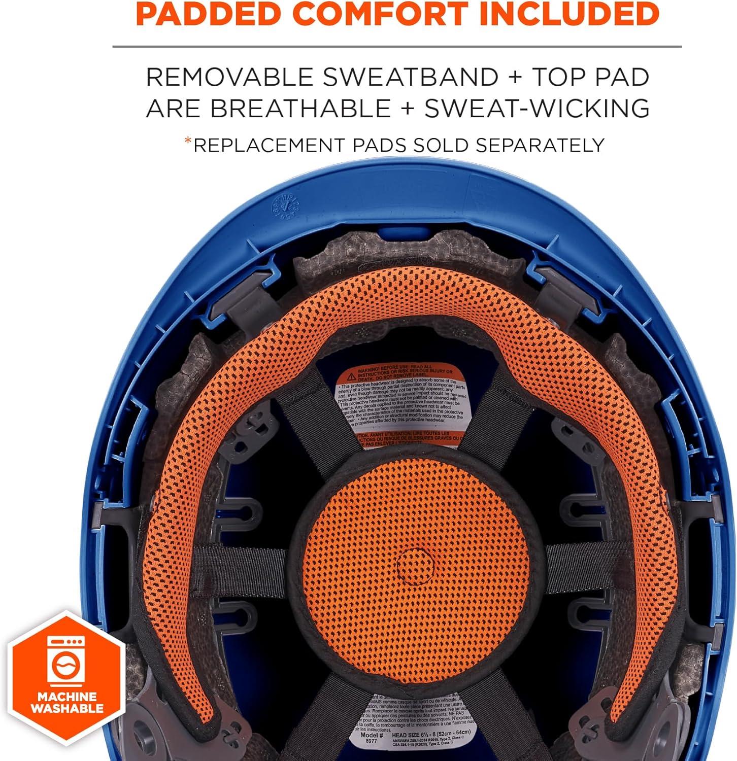 ALL-DAY COMFORT – Includes removable hard hat sweatband and top pad made of breathable, sweat-wicking and odor-resistant, machine washable materials