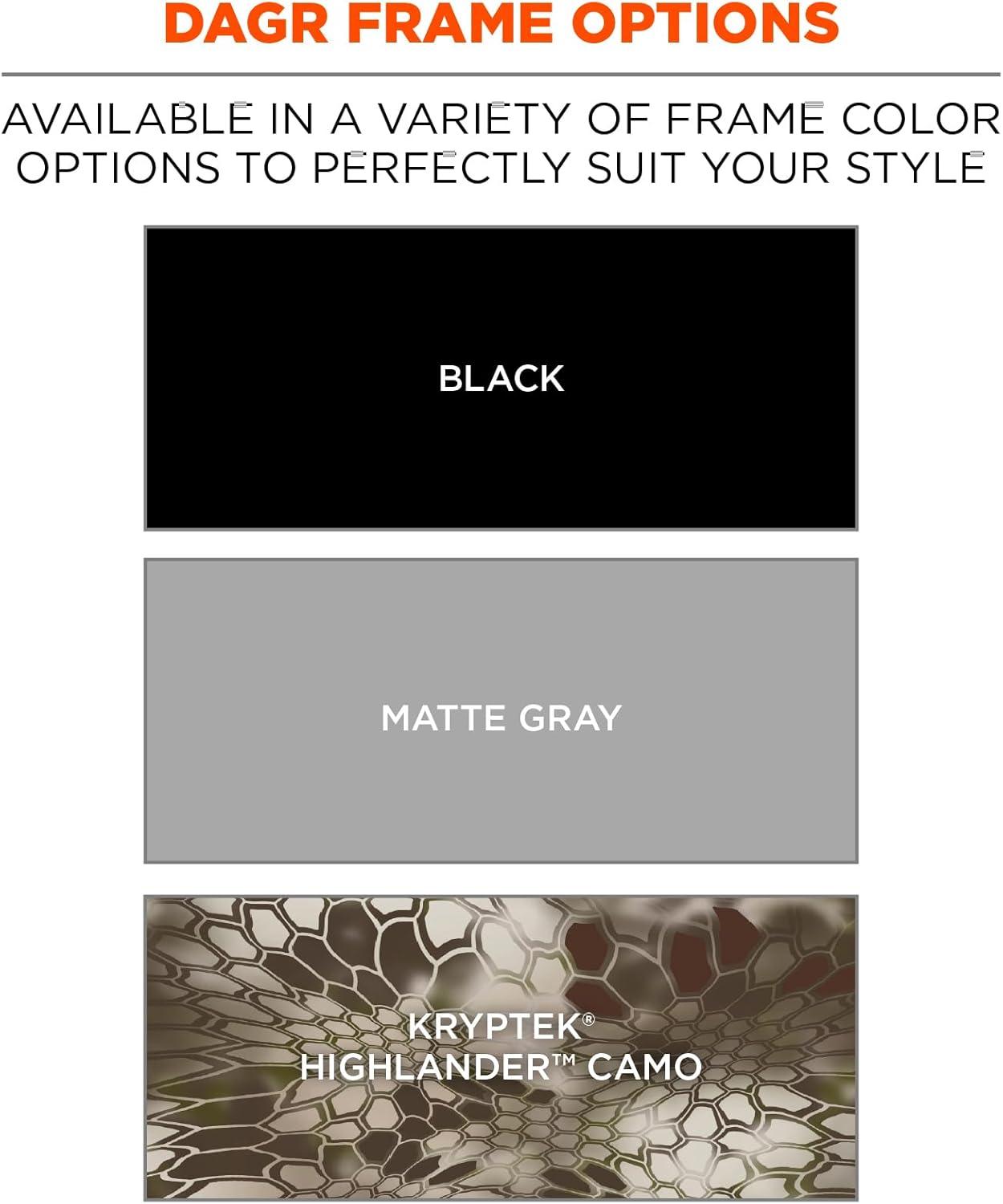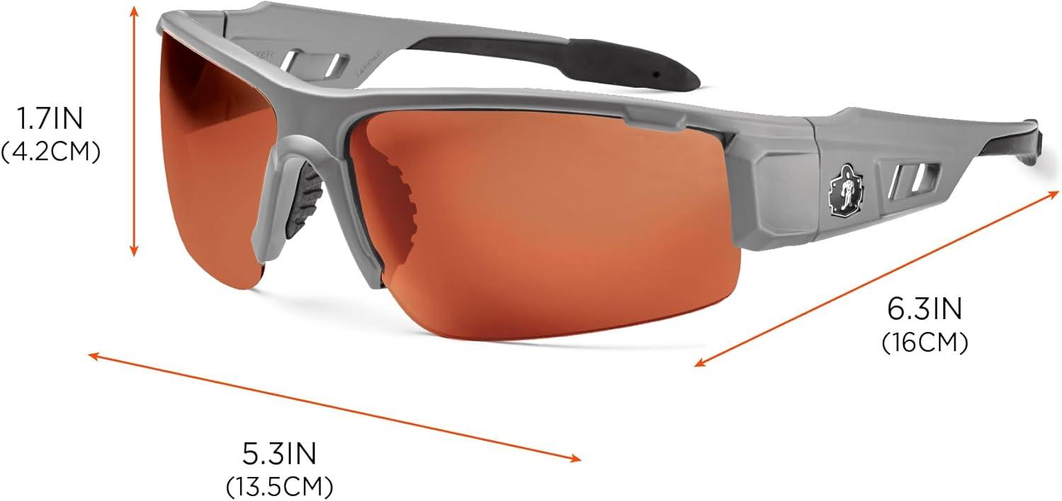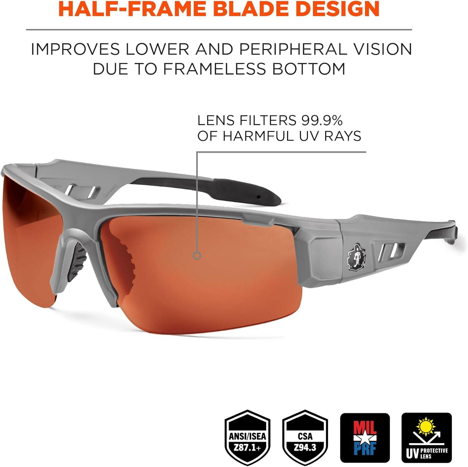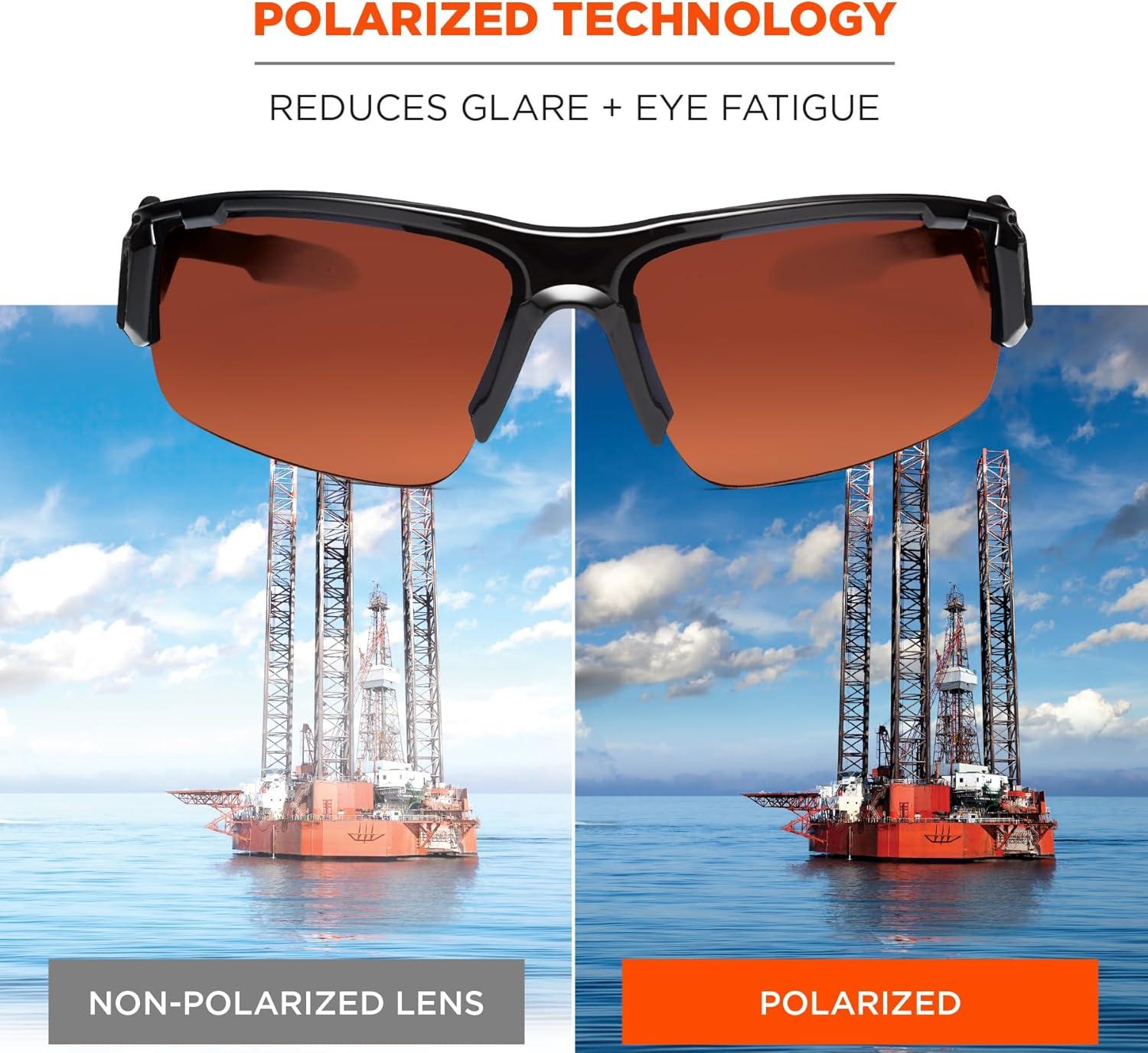 Skullerz DAGR Polarized Safety Glasses are half-frame glasses with a blade-style design that offer a sleek and sporty look, perfect both on the job or off. These safety glasses feature polycarbonate lenses to protect against impacts and filter 99.9 percent of harmful UVA, UVB and UVC rays. Available in a variety of lenses to suit a range of tasks and light environments. The durable frames bend and flex without breaking. A non-slip rubber nose piece and rubber temples keep the glasses secure and resist sweat.