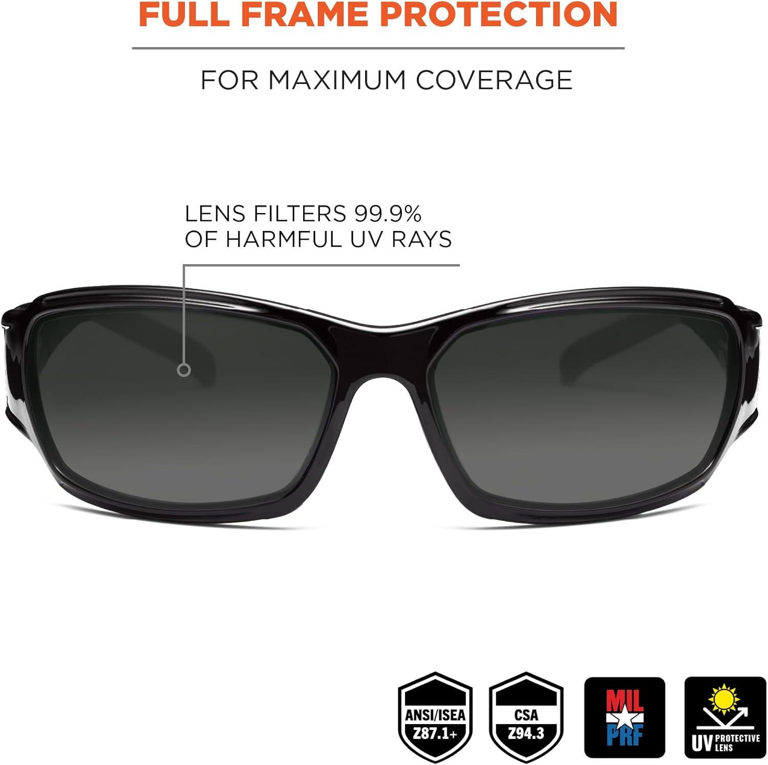 Ergodyne Skullerz Thor Safety Sunglasses - Black Frame, Blue Mirror Lens(Smoke Lens Black Frame)