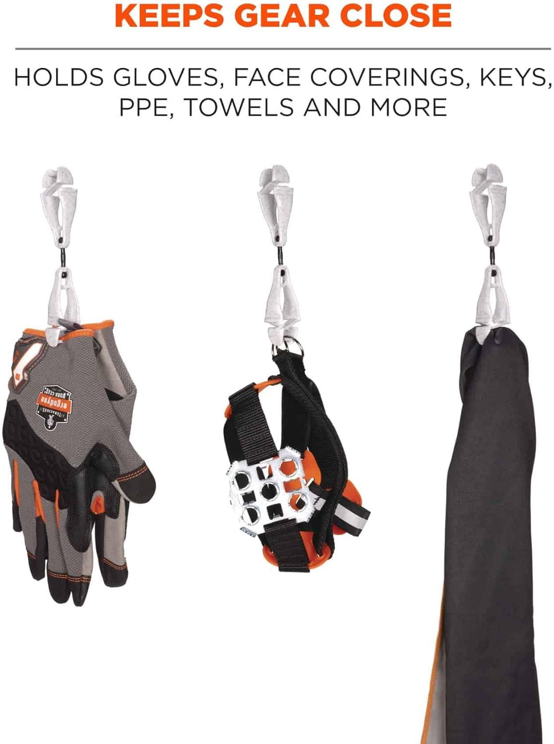 Ergodyne Squids 3420 Swiveling Glove Clip Holder with Dual Clips(Granite – 6-Pack)
